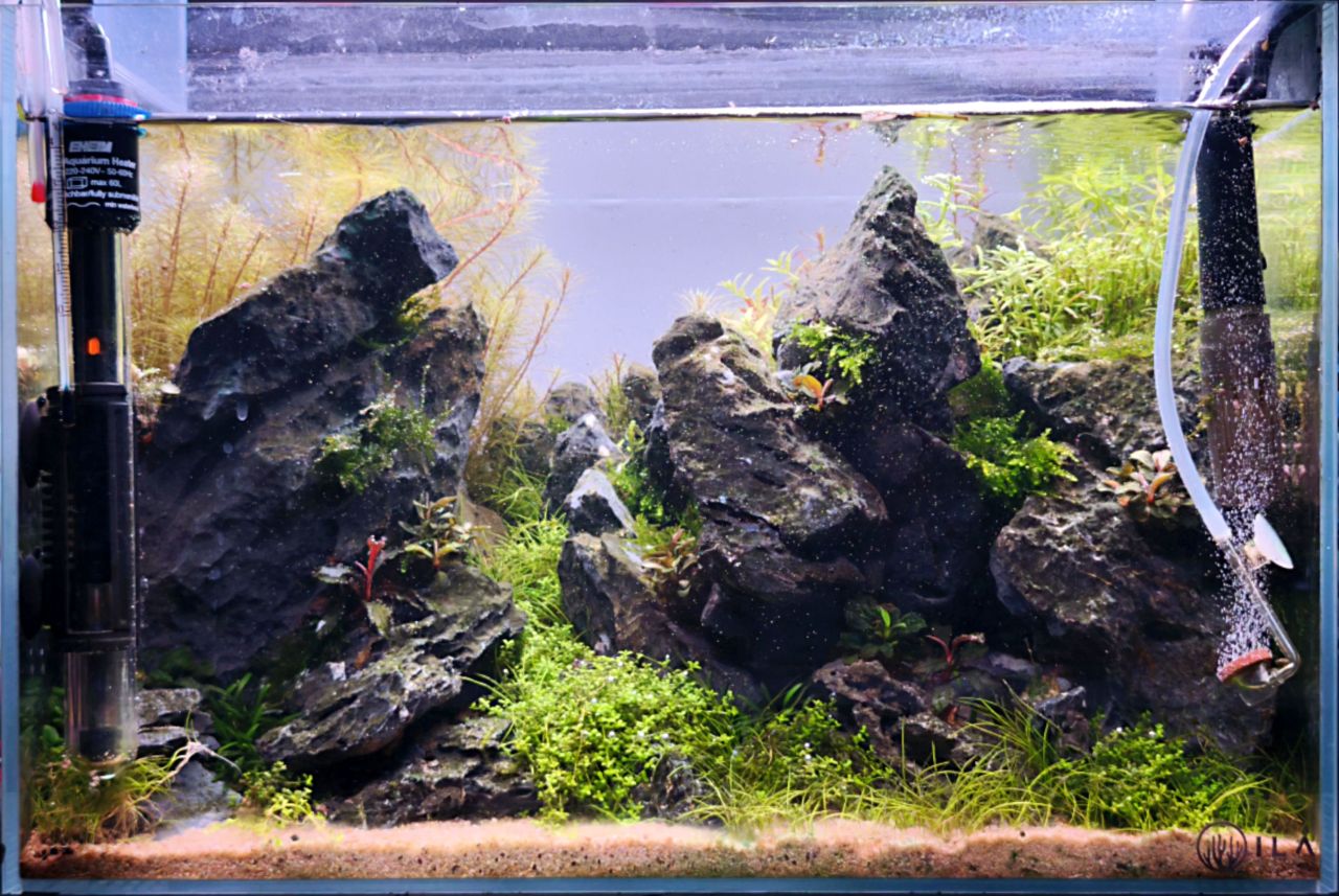 Boa noite a todos! Por aqui tudo rola na comum normalidade, apesar de alguma GDA nos vidros que já seria expectável com o aumento da intensidade de luz e o começo da fertilização. As rotinas continuam a bom passo com a TPA semanal de cerca de 40/50%. Quanto ás podas, ainda ando a tentar acertar as coisas, mas por norma estou a podar as rotalas semanalmente, as restantes vou avaliando conforme necessidade. As podas de molde já começaram, agora é ir compondo a coisa com tempo e tentar não pisar muito o risco. Quando digo pisar o risco estou a referir-me especificamente às horas e intensidade de luz, neste momento estou a fazer 8h a 100% e 45min. no inicio e fim do fotoperiodo a 75%, tudo somado quase 10h de luz. @Vasco Ferreira, @Fernando Freire e @gjsilva OBRIGADO pelas vossas palavras e peço DESCULPA pela minha tardia resposta! Deixo aqui o antes e depois da manutenção desta semana. Ainda estou a estudar se atenuo a presença da gravilha tão evidente ou se deixo assim. Um bem-haja1 point