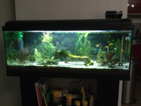 Actualmente tenho um aquário de 120 litros, no qual tenho uma pequena comunidade de peixes que a meu ver se entendem muito bem.