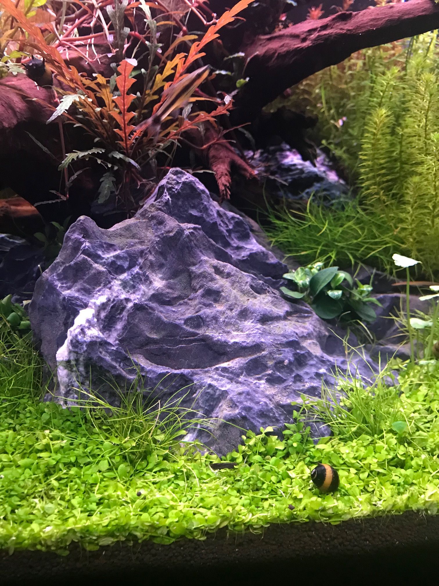 Ora boas pessoal, A inscrição para o IAPLC lá vai ter que ficar para o próximo ano, pois o tapete recentemente replantado ainda não está fechado, e ao mesmo tempo, voltei a fazer algumas alterações ao layout, não a nível de hardscape mas a nivel de plantas... e desta vez não foi para adicionar novas espécies mas sim retirar a myriophyllum guyana, pois não estava a gostar da transição dessa planta para as rotalas. De resto, apesar de já ser preciso dar uso à tesoura de forma a aumentar a densidade de rotalas na parte traseira do aquário, a parte direita que tantos problemas deu já está bem preenchida, e de forma geral as plantas estão bastante saudáveis. Nos últimos tempos nas folhas das anúbias e buces tenho reparado no que parece ser Green Spot algae (visível na 6ª imagem), mas não parece estar a alastrar... não sei se será por estar a utilizar fertillização a mais (continuo a utilizar 3 pushs de tropica specialized diários), ou se pode ser falta de fosfato (PO4)... se alguém já teve o mesmo pode deixar opinião. Seguem algumas fotos do estado do aqua: Fiquem bem