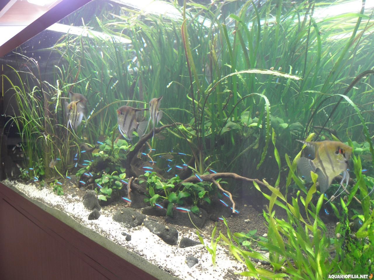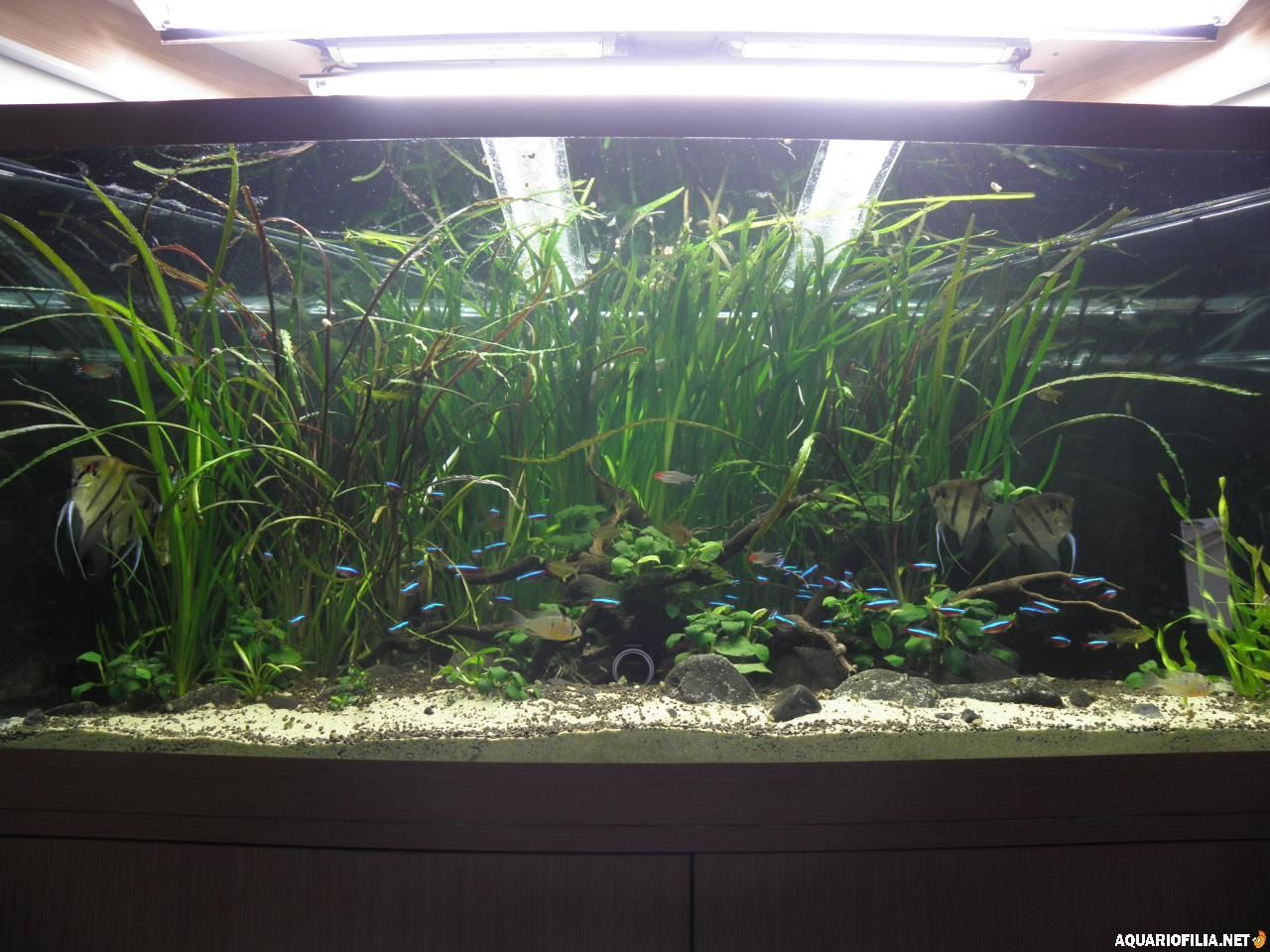 nuno_79 Publicado: Março 9, 2011 Autor Publicado: Março 9, 2011 (editado) Após algum tempo sem postar aqui no forum, ficam umas fotos de como está o aquario, após uma valente poda e retirada de algumas plantas, aproveitei tambem para retirar os SAE que estavam enormes, e tenho tentado sem sucesso, retirar as corys, acho-lhes graça, mas misturam-me o aquasoil com a areia, sendo assim a minha ideia é colocar plantas diferentes das que tinha e adequar o aquario aos escalares, mais a nivel de fauna pois tinha muitas especies,alem dos SAE sairam tambem 12 neons chineses, vou manter os cardinais, nariz de bebado, tetra limão, os altispinosa e claro os escalares que estão enormes, mas ficam as fotos... no geral: Editado Março 9, 2011 por nuno_79 Citar