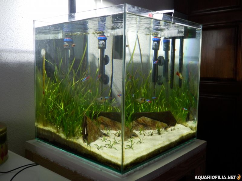 CFlor.at Publicado: Abril 16, 2015 Autor Publicado: Abril 16, 2015 Boas,Já há algum tempo que não dizia nada por isso aqui vai um update: Está um bocadinho sem rumo por isso quem tiver ideias faça favor.Tive uns problemas com algas, que ainda são visiveis, e por isso simplifiquei a flora e agora só tenho vallisnerias e sagitarias.A fauna é a mesmo com excepção de um jordanella floridae que introduzi para combater as algas.Agora a questão é: gostava de ter um casal ou um macho e duas femeas de jordanella em vez dos ramirezis mas para isso teria de substituir os corydoras porque o jordanella implica com eles, alguma ideia? E quanto aos neons acho-os demasiado grandes para ter um cardume deles no meu aquario, sabem de alguma especie que seja mais pequena e que também faça uns cardumes bonitos? Aceitam-se sugestões!!! Citar