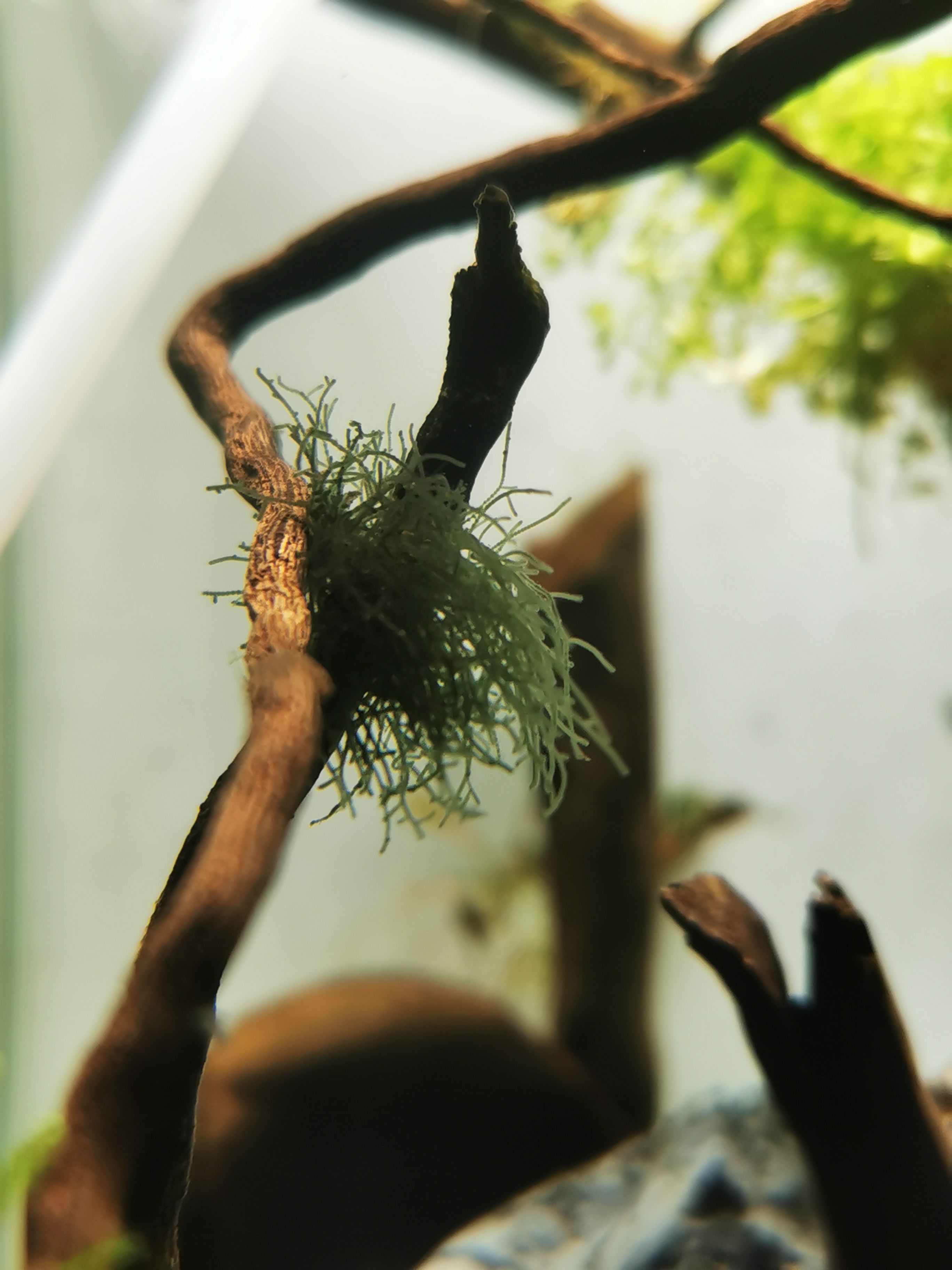 Vera Santos Publicado: Julho 25, 2020 Autor Publicado: Julho 25, 2020 Identify and Destroy Staghorn Algae Foto de Vera Basílio Santos What is Staghorn algae? Is Staghorn algae harmful to fish? Is Staghorn algae harmful to plants? What is the cause of Staghorn algae? How do you get rid of Staghorn algae? What is Staghorn algae? It’s easy to see why this algae is named after the antlers of a male deer. The branching growth of Staghorn algae would not look out of place on the head of a deer. Healthy Staghorn algae is typically a dark gray (almost brown), light gray or white color. However, this algae can look slightly green depending on your lighting setup. Don’t be fooled by the color, Staghorn algae is actually a member of the red algae family. Staghorn algae most commonly grows on plants, although I have seen cases where it attached itself to rocks, aquarium decorations and even a filter pipe. You can identify Staghorn algae by its branching growth. It starts out looking like a sapling in fall – you know, the ones that lose their leaves… …So tiny, it can easily be missed among the much larger plants in your aquarium. But as Staghorn algae grows, it becomes a bit more spindly… As Staghorn algae continues to grow, it can completely cover a surface. When this happens, it almost looks like an old, messy beard… And outside of the water, Staghorn algae still looks like antlers! Don’t be confused with… Staghorn algae is often confused with black beard algae. And, I can understand why – fully grown Staghorn algae looks like a wiry beard. In fact, it often looks more like a beard than black beard algae does. So, how do you tell the two apart? Let’s compare the two during their early stages of growth… In the blue circle, you have black beard algae, resembling the tightly packed clusters of bristles you find on a makeup brush. Staghorn algae, circled in red, looks more like the antlers of a male deer – hence the name. When fully grown, the two also look quite different, but unless you compare them side by side, it’s easy to see where the confusion comes from. Fully grown black beard algae, on the left, is dense and bushy while Staghorn algae, on the right, is sparse and wiry. Think you have black beard algae in your tank? Check out our black beard algae guide – with pictures and instructions on how to get rid of it! Is Staghorn algae harmful to fish? Nope, Staghorn algae does not represent a danger to your fish. In fact, if you let your Staghorn algae grow to ridiculous proportions, many fish and shrimp explore its long and bristly growth. Plants on the other hand… Is Staghorn algae harmful to plants? Yes, but not directly. In fact, in its early stages of growth, Staghorn algae is hardly a bother at all. But as it grows, Staghorn algae will compete with your plants for nutrients. Any nutrients that the Staghorn algae consumes are not being used by your aquarium plants. Also, if you leave Staghorn algae to grow thick enough, it can block out light from any plants that are unlucky enough to be underneath it. And if you know about photosynthesis, you are fully aware that light is vital for most aquarium plants to survive. Without it, they die. So yeah, an uncontrolled spread of Staghorn algae can be particularly dangerous to plants in your aquarium. What is the cause of Staghorn algae? It almost feels like Staghorn algae appears by magic. One day your aquarium is algae free, and the next your plants have a gray fuzz growing over them. There are three common causes of Staghorn algae… 1. Low CO2 It is almost universally agreed that low CO2 levels are the primary cause of Staghorn algae appearing. If your CO2 levels are too low or fluctuating, you are creating the perfect environment for Staghorn algae to grow. It could be your CO2 canister is running low, there is a blockage, a leak, or you are not injecting the correct amount. Don’t run a CO2-injected tank? Introduce CO2 to your aquarium by dosing with Seahchem Flourish Excel, which is a simple additive that provides your plants with a source of carbon, and, as I discuss later, can kill Staghorn algae. 2. Poor water circulation Okay, so maybe your CO2 levels are just fine. But if you don’t have good water circulation, it’s not going to be able to flow around your entire tank. You see, it’s entirely possible that the Staghorn algae outbreak that you are experiencing is growing in a dead zone. Products such as power heads have been specifically designed to improve water flow by giving it an extra push around your aquarium. 3. Too much light If your aquarium has more light than your plants can use, Staghorn algae will happily take over. Do you leave your aquarium light on for long periods of time? Maybe you never turn it off. If so, you are basically encouraging an algae bloom! Reducing the amount of light that shines on your aquarium can slow or even stop Staghorn algae from appearing altogether. But don’t shroud your tank in darkness just yet. You still want to make sure that there is enough light for healthy growth of your aquarium plants. You can use a plug-in aquarium timer to automatically turn your lights on and off each day. It sure beats doing it manually – something that you will certainly forget to do. Check out our detailed guide on aquarium timers for more information, including which timer is best for your aquarium. How do you get rid of Staghorn algae? In addition to balancing your lighting and CO2, there is one product above all others that I recommend for combatting Staghorn algae… Seachem Flourish Excel… Not only does it kill Staghorn algae, but it will improve the growth of other plants in your aquarium. This will be especially noticeable if you don’t inject CO2. Using it is simple – just follow the instructions and make sure that your water flow is adequate to deliver Excel to every corner of your tank. In under a week, you should notice the Staghorn algae beginning to die. As Stag