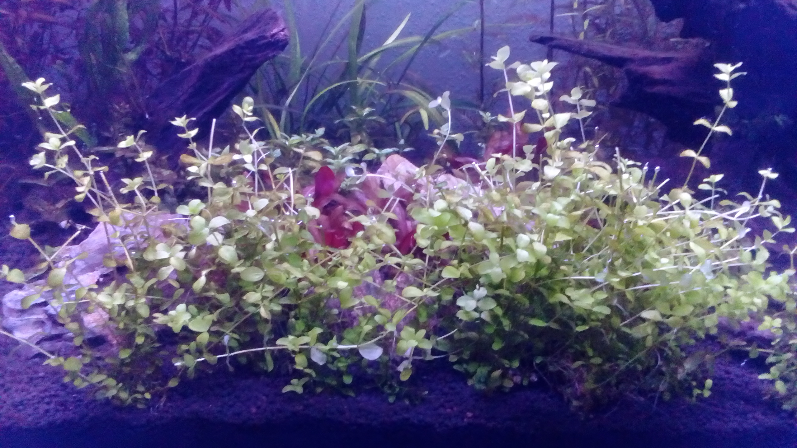 brunofasoares Publicado: Maio 2, 2018 Autor Publicado: Maio 2, 2018 Já esteve bem pior. Tinha reduzido a luz em cerca de 1 hora e a intensidade em 1 nível. Reduzi a fertilização e só estou a dosear 2x semana Macros e 2x semana de Micros, o CO2 nem lhe mexi, deixei a mesma injecção e o mesmo tempo. Tem 1 hora a mais que a iluminação. Liga 2 horas antes e desliga uma hora antes. Fez no Domingo 1 mês, na 2ª feira levou nova TPA de 50% e uma boa remoção das algas, pelo menos uma boa parte das filamentosas foi removida, e noto que está mais fraca, até mudou de cor para um tom mais acinzentado. Limpeza de muitas folhas. Algumas folhas das plantas como a Super Mini Red têm Staghorn, também notei um pouco no feto e numa das anubias, tal como BBA numa das anubias. Todas as anubias afectadas foram retiradas e estou a fazer tratamento à parte com água oxigenada. Green Spot em 2 dos vidros porque onde o aquário está, recebe um pouco de luz das janelas, não muita intensidade, mas o suficiente para se notar que é precisamente por estar a receber luz do dia. Poda na Montecarlo que já chegava quase ao cimo de água. As outras plantas ainda não vou podar, quero perceber primeiro se os férteis vão ser o suficiente para que cresçam bem. Confesso que a planta que me estava a preocupar mais até está bastante bem, Alternanthera Reinickii Mini, também porque não estava a conseguir ver por causa do tamanho da Montecarlo. Como a Reinickii Mini foi um vaso in vitro, cresceu bem e rápido e talvez por isso não tenha sido muito afectada. As outras como se estabeleceram mais rapidamente acabaram por ser apanhadas mais facilmente. Por muito que me custe aqui vão umas fotos tiradas na 2ª feira após a limpeza, poda e TPA. PS: um pé de Glossostigma Elatinoides que vinha com a Montecarlo e que já se nota um bom crescimento. Assim que estiver mais estabilizado vou acrescentar mais uns pés da Glosso e da Proserpinaca que tenho na cultura emersa. Citar Bruno Soares http://www.aquariofilia.net/forum/topic/255024-honey-i-shrimped-thekids/ https://www.aquariofilia.net/forum/topic/257876-apistogramma-cacatuoides-orange/?tab=comments#comment-1414645 1ª Montagem de água Salgada: https://www.aquariofilia.net/forum/topic/259497-b-reefing/