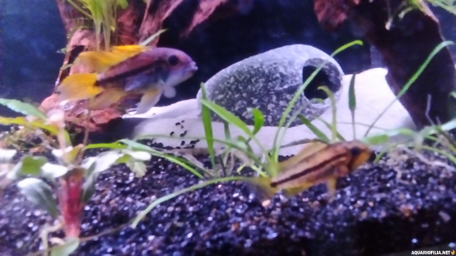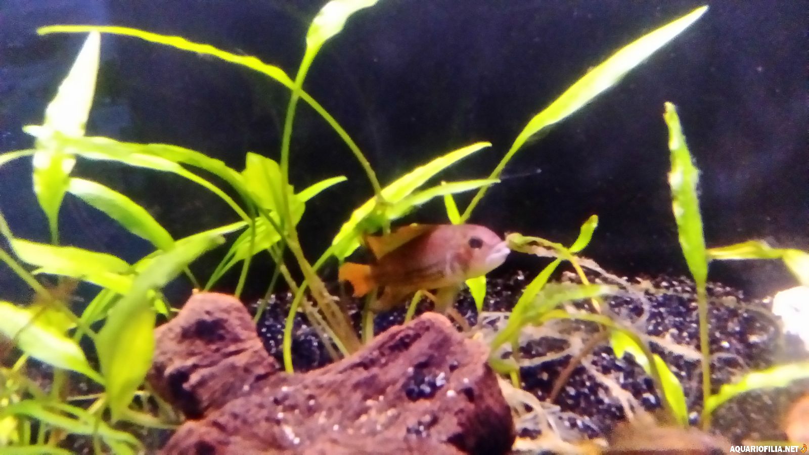 brunofasoares Publicado Setembro 28, 2018 Publicado Setembro 28, 2018 (editado) Possível montagem nova, desta vez para Apistogramma Cacatuoides Orange. Eles estão cá em casa, mas numa montagem de 40 litros, que me parece bem pequena para o casal. Aproveitei uma montagem de um pequeno plantado. Na altura não deu para fazer uma montagem adequada, porque me foram oferecidos por um amigo e era o espaço que havia disponível naquele momento. Quando chegaram ainda eram juvenis, mas quase adultos. Rapidamente cresceram e começaram a acasalar. Neste momento vou na 5ª ninhada e ainda não consegui que nenhum chegasse à fase juvenil. Vejo-os atrás da mãe, que nesta ninhada até os trouxe à frente (pareceu-me mesmo para me avisar para lhes dar de comida) e ao fim de uns dias costumam desaparecer/morrer. Começo a ver cada vez menos até não ver nenhum. É fácil perceber quando a fêmea está preparada para acasalar, porque chama mesmo o macho e quando tem postura, porque literalmente desaparece. Só vem espreitar quando percebe que há comida. Mesmo assim até costumo fazer cair perto de onde ela tem os ovos para não stressar por deixar a postura sozinha. Agora o que me interessa saber antes de mais é o que acham. Devo manter o casal onde está? Faço realmente uma nova montagem para eles, no caso de 60 litros? Ou será melhor um aquário maior e até podia colocar mais uma fêmea? Digo isto porque a fêmea corre com o macho do local da postura e mesmo de ao pé dos alevins, quando já nadam atrás dela. Ora como o aquário tem as medidas de 40x35x30, o macho passa o tempo todo na frente do aquário. Só na altura da alimentação é que vai mais atrás porque a fêmea também está ocupada. Outra questão. Como colocar vídeos? Apenas através de links ou posso ter o vídeo no PC e partilhar aqui no fórum? Tenho o vídeo desta última ninhada e não consigo colocar. Editado Setembro 28, 2018 por brunofasoares Bruno Soares http://www.aquariofilia.net/forum/topic/255024-honey-i-shrimped-thekids/ https://www.aquariofilia.net/forum/topic/257876-apistogramma-cacatuoides-orange/?tab=comments#comment-1414645 1ª Montagem de água Salgada: https://www.aquariofilia.net/forum/topic/259497-b-reefing/