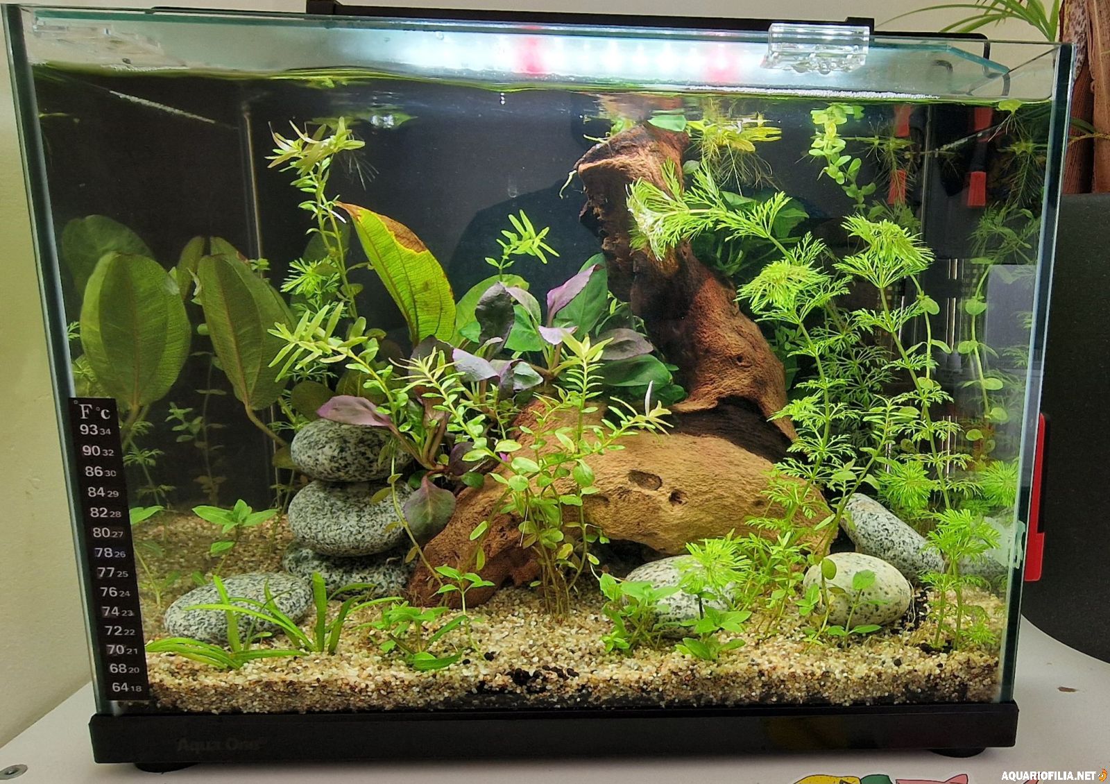 Markinho01 Publicado: Maio 14, 2024 Autor Publicado: Maio 14, 2024 (editado) Bem ja passou 19 dias desde o início da aventura e no 17° dia: introduzi o Ares ( nome dado pelo meu mais velho, referente ao deus Grego ) Ate agora adaptação parece estar a correr bem. Estou a espera de uma resposta sobre exatamente da rotina do senhor da loja em termos de alimentação para manter a rotina da origem. No primeiro dia não o alimentei e a luz foi desligada, ontem dei lhe 3 paletes e hoje tambem lhe dei outras 3 . Tenho a agua a 25.4° e hoje sem querer desliguei o Termóstato as 7:30 da manha e quando voltei as 17:30 é que reparei. Tive sorte hoje ate teve um clima bom para o pais em que estou e agua manteu se nos 25 . Por isso correu tudo bem duplamente, ainda vejo alguns camarões por la portanto nao me parece que esteja a correr mal. Sempre que me chego ao aquario ele parece que comeca a dancar ( deve ser a mostrar se ) tambem lhe dei a comida a boca ele ja sabe onde é o spot da comida. Tava a pensar colocar folha de amêndoa para escurecer a agua, sera que as plantas vao sofrer com isso? Aqui fica a foto de hoje e vou continuando atualizar. Obrigado pelas vossas dicas Editado Maio 14, 2024 por Markinho01 1 Citar Pareces um KIM!!!